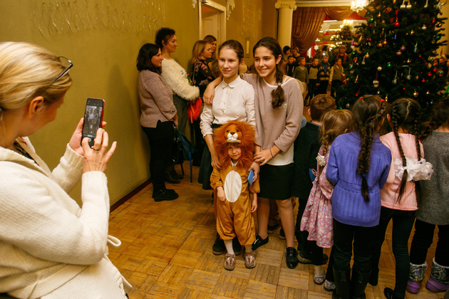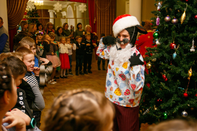 В фойе театра – милые праздничные световые инсталляции. На сцене – смех и радость. В зрительном зале - милые «снежинки», зайчики, мышата, коты, волки и лисички.