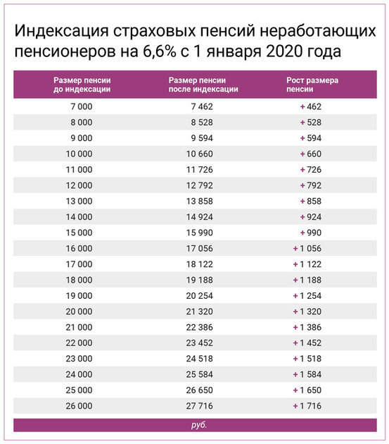 В приложенной таблице приведены суммы увеличения пенсии - исходя из ее размера.