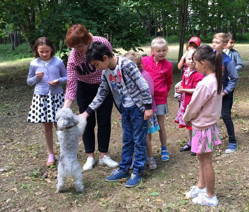 В занятиях принимают участие пудель Тотоша и немецкая овчарка Лесси. Взаимодействие с животными полезно как гиперактивным, так и застенчивым детям, уверяют психологи. Первым собаки помогают концентрировать внимание, вторым - раскрепоститься. Благотворное влияние четвероногих друзей на детскую психику делает уроки более продуктивными.