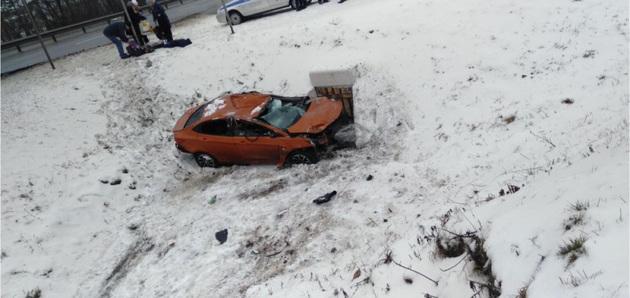 «Форд», двигаясь по инерции, столкнулся с еще одним авто – «Lada Xray». Кроссовер также не удержался на трассе и съехал в кювет.