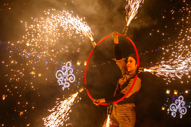 Довольной детворы было очень много этим пятничным вечером. Юные владимирцы закружились на коньках в хороводе. А в кульминации праздника состоялось файер-шоу и дискотека на льду.