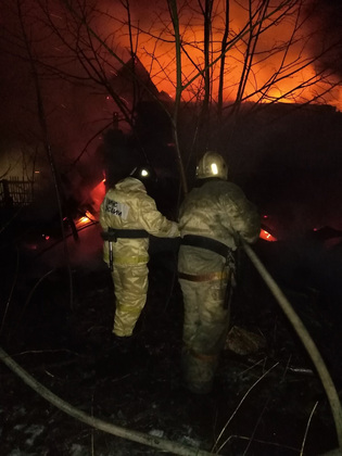 На место незамедлительно выехали пожарно-спасательные подразделения. К моменту их приезда дом был весь охвачен огнем. Горение зарегистрировано на площади 80 кв.м.