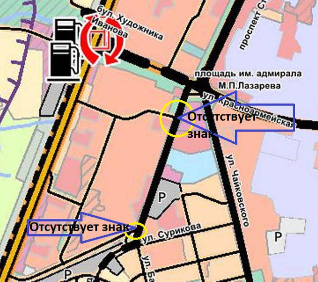 Ещё один, в принципе неопасный, но становящийся опасным из-за отсутствия знаков приоритета, перекрёсток находится прямо около нашей редакции. Это пересечение ул. Пичугина с улицами Разина и Офицерской. Основной поток машин здесь движется с Офицерской на Разина. Поэтому водители зачастую не замечают автомобили, выезжающие на перекрёсток с ул. Пичугина со стороны проспекта Ленина. Но они должны пропускать их как помеху справа, поскольку знаки приоритета отсутствуют, соответственно, здесь перекрёсток равнозначных дорог, хотя, конечно же, такие знаки здесь должны быть.