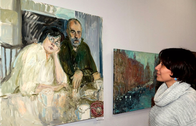 Впрочем, на выставке есть и как минимум один портрет. Семейная пара, похоже, как и сам художник, вглядывается в пространство, но, по грустному выражению глаз, супруги пока не увидели в нем пресловутого четвертого измерения, одаривающего познавшего его способностью заглянуть по то сторону холста.