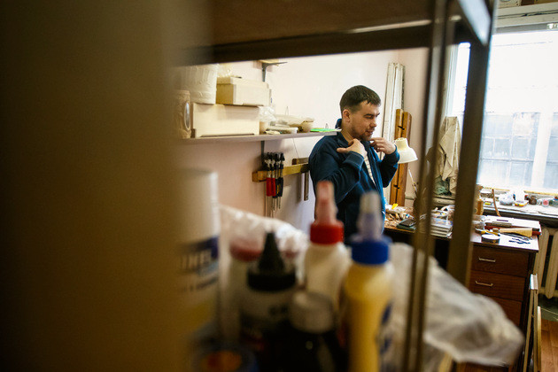 - Каждый год езжу домой, за материалом. Я собирал бересту в Центральной России, но она не такая бархатистая, как на севере, и гораздо тоньше. А от материала многое зависит. И я должен все собирать вручную. Береста хорошо снимается, когда отойдет сок, после 15 июня. Она легко отходит, деревья не повреждаются. После ее необходимо выдерживать, хранить два-три года в тени, беречь от солнца. Лучше всего - в сухом подвале. Но и здесь, в небольшой мастерской, хватает места, в принципе.