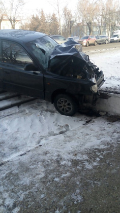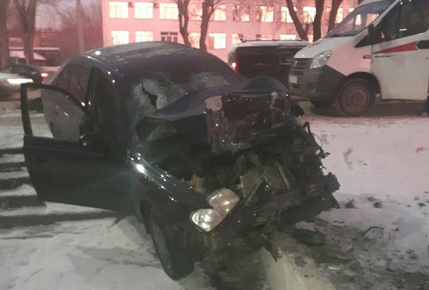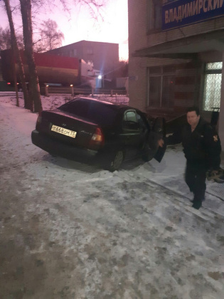 Автомобиль предполагаемого виновника ДТП после столкновения вылетел с дороги и ударился в здание Владимирского экономико-технологического колледжа.
