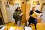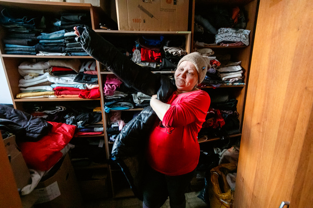 …Громкоголосая Валентина не первый раз приходит сюда со взрослым сыном-инвалидом. Оба на учете с психическими расстройствами. Получает наборы продуктов, а в этот раз пожилой женщине подобрали теплые пальто и куртку.