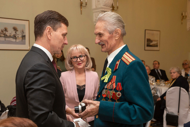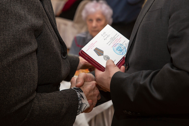 Губернатор вручил участникам встречи юбилейные медали к 75-летию великой Победы в Великой Отечественной войне.