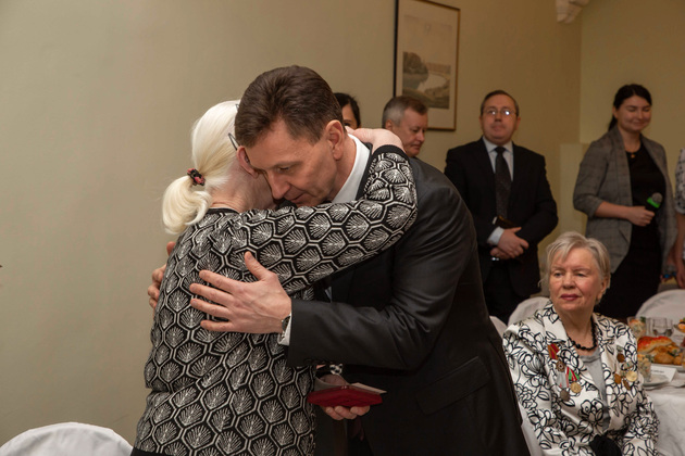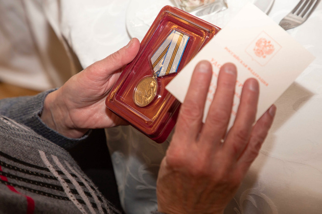 Среди награжденных - Лола Васильевна Анисимова. Ей было пять лет, когда началась война. Ее семья находилась в осажденном Ленинграде. Там же встречала Победу. Лола Васильевна - художник-реставратор, автор музея деревянного зодчества в г.Суздале.