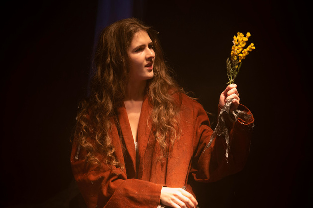 А вот сценография — заслуга Татьяны Видановой, умудрившейся придумать, как визуально, «в лобовую» показать обнаженную душу Маргариты на фоне то ли пепелища, то ли опавших листьев, и иезуитство той, которая с ней на сцене говорила, меняя наряды, и будто развлекалась болезненным разладом в душе счастливой и несчастной одновременно женщины - с пушистыми сияющими волосами и с той самой любопытной сумасшедшинкой, в истории Булгакова очаровавшей даже Его — сами знаете кого.