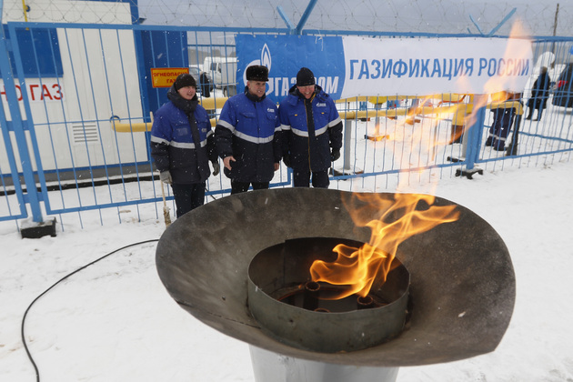 В честь открытия газопровода был зажжен символический газовый факел на переносном газовом светильнике. Этот огонь чем-то напоминал олимпийский.