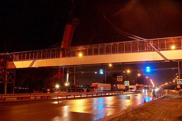 Управление автодороги М-7 «Волга» предупреждает водителей о том, что в ночь на 6 февраля на участке трассы в черте города Владимира будет временно перекрыто движение в связи с монтажом модульного надземного пешеходного перехода.