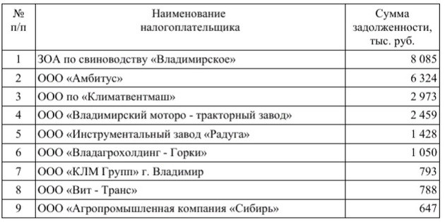 ЗАО по по свиноводству «Владимирское» по состоянию на 1 января 2020 года имеет задолженность по уплате НДФЛ в размере 8,085 млн рублей.