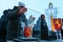 У «ног» опоры-витязя уже уложена площадка из плитки, на которой и собрались участники церемонии.