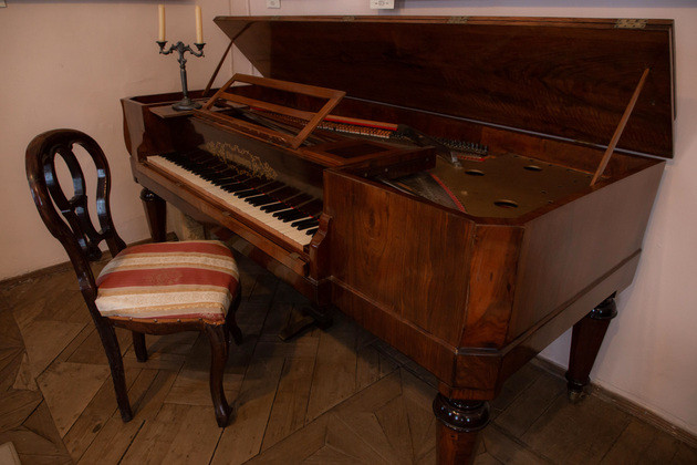 В парадной гостиной, где танцевали и музицировали, не обойтись без музыкальных инструментов. Старинная фисгармония и хаммерклавир - оба в рабочем состоянии.