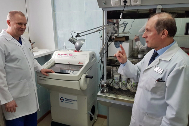 Как подчеркнул главврач ЦГБ Антон Зинченко, робот в состоянии проводить диагностику биопсийных и операционных материалов очень оперативно - буквально в течение 15 минут.