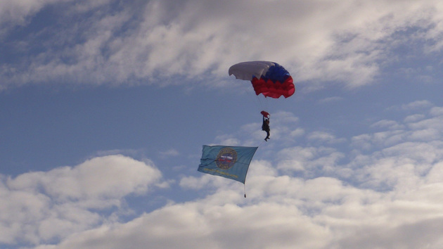 Для беспарашютного десантирования, который применяется в труднодоступной местности, используются спусковые роликовые устройства. Также на аэродроме Добрынское спасатели отработали прыжки с флагами.