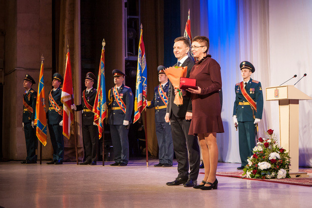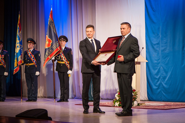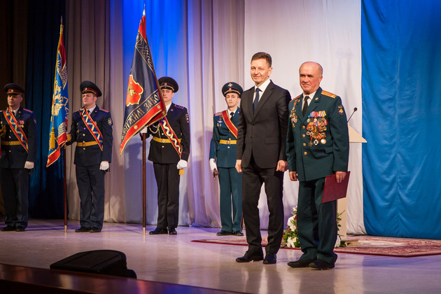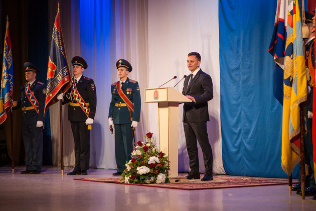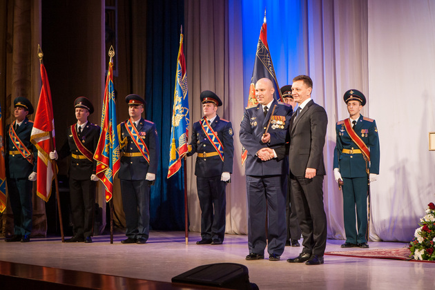 Затем с поздравлениями выступил от Законодательного Собрания вице-спикер Дмитрий Рожков. Завершил серию праздничных обращений сенатор Александр Пронюшкин. И Рожков, и Пронюшкин также вручили награды, соответственно, от Заксобрания области и Совета Федерации.