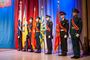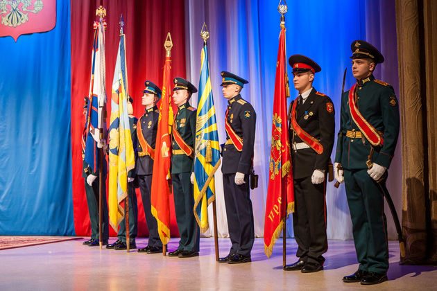 И вот на сцену поднялся начальник Владимирского гарнизона, командующий 27-й гвардейской ракетной армией, гвардии генерал-майор Андрей Бурбин. Он объявил торжественный внос боевых знамен воинских частей и учреждений Владимирского гарнизона, штандарта губернатора области.