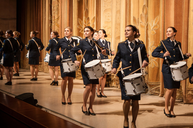 Начали торжество девушки - барабанщицы Владимирского юридического института ФСИН, а затем прозвучала песня «Человек в погонах» в исполнении ансамбля «Фемида», также из ВЮИ.