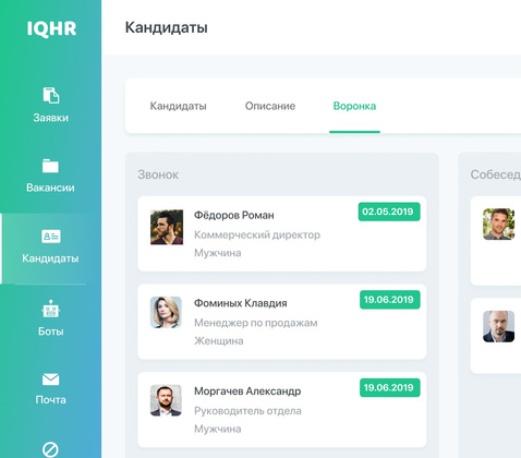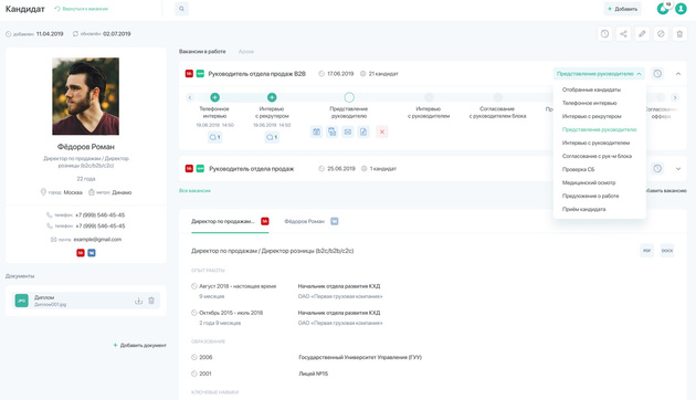 удобный интерфейс коммуникации с кандидатами;