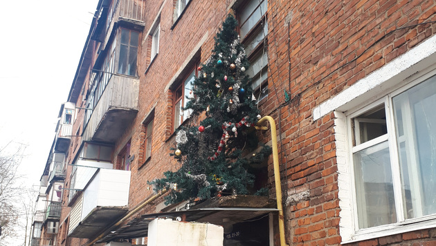 Когда солнечным мартовским днем я увидела наряженную новогоднюю ель на козырьке подъезда жилого дома, воображение сразу нарисовало классическую анекдотичную ситуацию: 8 марта праздничный атрибут стал последним аргументом в семейной ссоре и был отправлен прямо в окно, да застрял над входом.