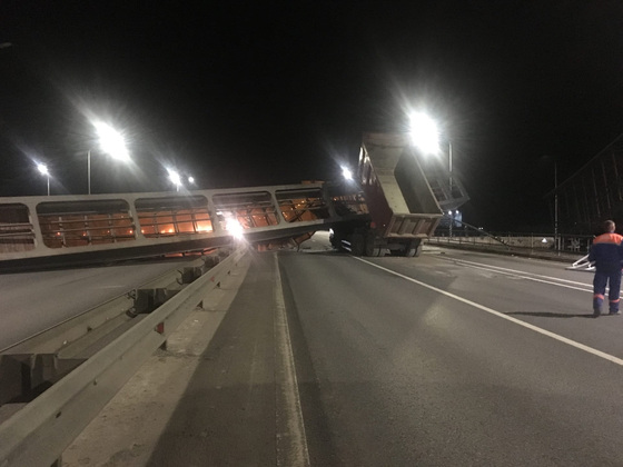По информации УМВД России по Владимирской области, большегруз двигался в сторону Владимира. На подъезде к надземнику у него самопроизвольно поднялся кузов и машина, по сути, тараном въехала в пешеходный мост.