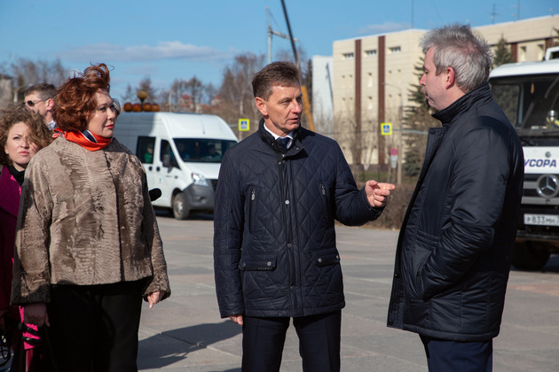 Перед началом заседания Владмир Сипягин и председатель комиссии Общественной Палаты РФ по экологии и охране окружающей среды Альбина Дударева осмотрели выставленные на площадке перед Белым домом мусороуборочную технику и образцы контейнеров, которые имеются в наличии у регоператоров.