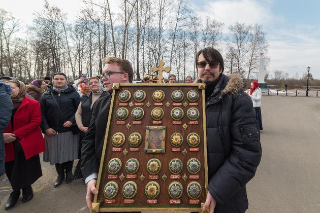 Как сообщает сайт www.eparh33.ru, 8 апреля руководитель молодежного отдела Владимирской епархии Андрей Горюнов, священники и миряне города Владимира совершили объезд центральных храмов благочиний Владимирской епархии со святынями: крестом с частицей Животворящего Креста Господня из собрания святителя Афанасия Ковровского, списком Боголюбской иконы Божией Матери, ковчегами с частицами мощей святого благоверного князя Александра Невского и других святых. Священники отслужили молебны в храмах Суздаля, Собинки, Коврова, Камешкова, Гусь-Хрустального, Судогды.