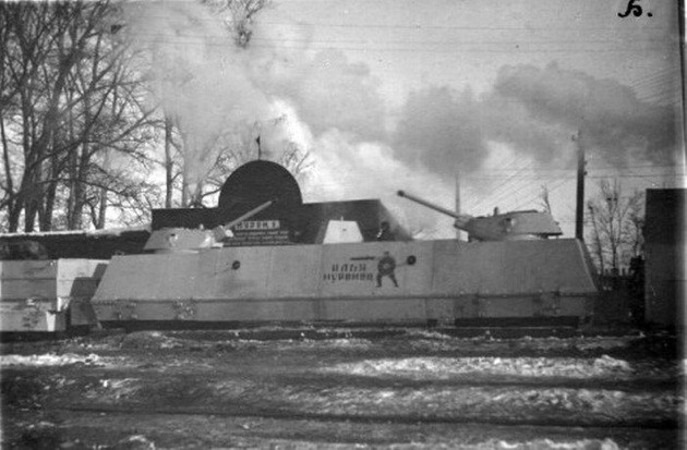 Тем временем в Муроме, где тоже сложились крепкие железнодорожные традиции, были свои умельцы, взявшиеся за бронепоезд. Несмотря на нехватку специалистов и отсутствие чертежей, он у них получился на славу: броню закалили настоящую, да еще проверили на прочность, чтобы выдерживала попадание снаряда. А вооружили тяжелыми орудиями и - впервые в истории строительства бронепоездов! – реактивными установками «Катюша»! Уже на фронте эту бронепоездную артиллерию дополнили зенитными пушками.