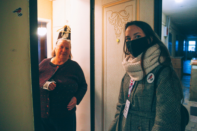 Вместе с напарницей и коллегой Аленой Бойковой (координатор команды «Молодежка ОНФ» и одна из главных волонтеров региона) пропитываем руки антисептиком, надеваем защитные маски и перчатки. Далее звоним в домофон, диктуем код и поднимаемся на пятый этаж.
