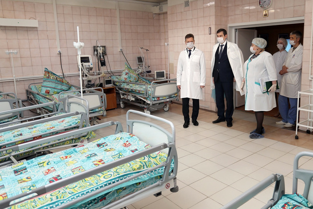 15 апреля специализированное отделение на базе 6-й горбольницы посетил губернатор Владимир Сипягин. Новое отделение рассчитано на 154 койки, 72 из них оснащены кислородом, 33 – аппаратами ИВЛ.