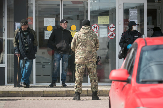 Неподалеку у продуктового центра полиция и ОМОН «построили» четырех граждан, с виду напоминающих бездомных. Но как к ним подойти? Тут тоже нужна осмотрительность – а вдруг – вирусоносители? Без парней в противочумных халатах может и не обойтись. В стороне от шума городского торговали саженцами, работали автомастерские. Жизнь, как весенняя поросль, пробивалась в Петушках то там, то сям, невзирая на коронавирус.