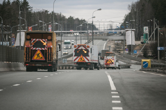 Несмотря на то, что на участках реконструкции дороги трасса сужалась до двух полос, мы мчали с ветерком – не было ни одной пробки. Трафик сократился в несколько раз, число легковых автомобилей было немногим больше тяжелых фур. Не было и ни одного живого «гаишника», зато было много картонных автомобилей ГИБДД.