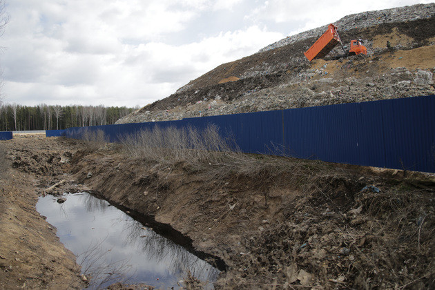 Происходит это, по мнению местных жителей, из-за того, что на свалке нет системы отвода фильтрата, а бетонный канал вокруг так называемого мусорного Эвереста - просто имитация этой системы.