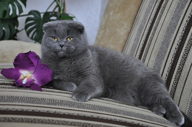 Мой домашний любимец - это кот породы Шотландский Вислоухий. Его зовут Сабур. А сошлись мы еще в мои студенческие годы во Владивостоке, когда Сабура 15 лет назад мне на день рождения подарили друзья.