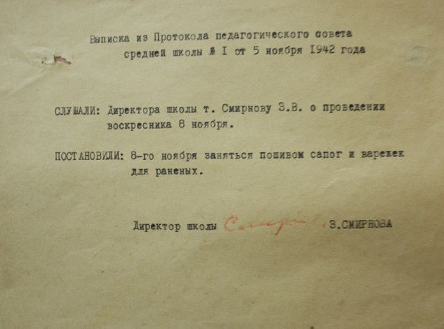 Впрочем старательные и позитивные дети относились к таким переменам мест учебы или к урокам на дому у учительницы с пониманием. «Во всех этих переселениях мы тогда не видели ничего чрезвычайного. Дети войны - всем своим сознанием мы были настроены на военный лад...», - такие воспоминания приводит краевед Валентина Титова.