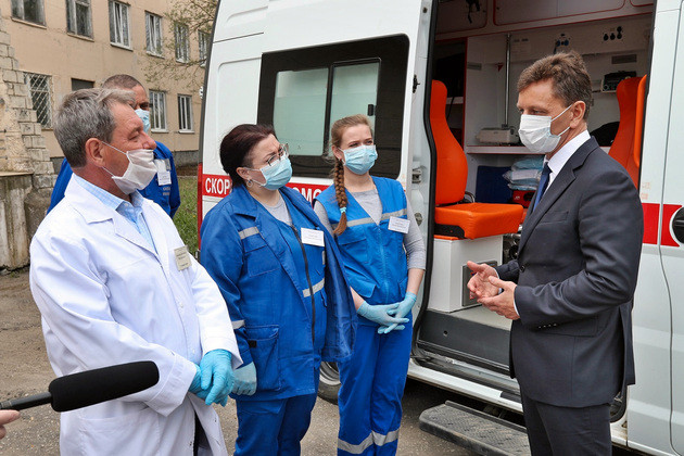 6 мая в ходе рабочей поездки в Ковровский район губернатор Владимирской области Владимир Сипягин встретился с сотрудниками станции скорой медицинской помощи, а также проинспектировал, как ведётся развёртывание инфекционного госпиталя на базе Ковровской многопрофильной городской больницы № 1.