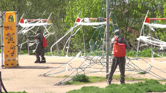В Кольчугине спасатели обработали порядка 45 объектов: дезинфицировали детские площадки, парк им. Ленина, скверы и места отдыха, а также спортивные и тренажёрные площадки.