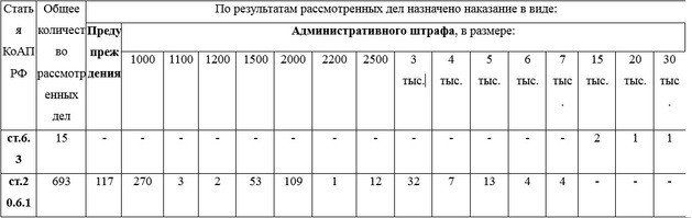 Данные о рассмотрении судами Владимирской области дел об административных правонарушениях, предусмотренных статьями 6.3 и 20.6.1 КоАП РФ - по состоянию на 7 мая.