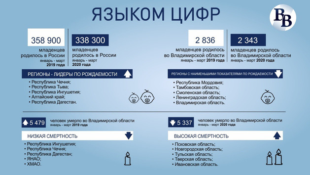С начала года в стране родилось 338,3 тысячи младенцев. Это более чем на 6% хуже, чем с января по март 2019 года. Конкретно по Владимирской области, по данным Управления ЗАГС, в первые три месяца 2019 года владимирцы произвели на свет 2836 малышей, а в этот раз — 2343. Тренд налицо.