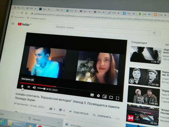 Кроме того, тот же творческий дуэт в онлайне в несколько этапов презентовал свою версию пьесы Леонида Зорина «Варшавская мелодия», где он – Виктор, а она – Геля... Валерия и Александр назвали этот опыт работы в виртуальном дуэте “экспериментом”. Но явно удачным – ведь впереди нас, зрителей, ждут новые творческие подарки.