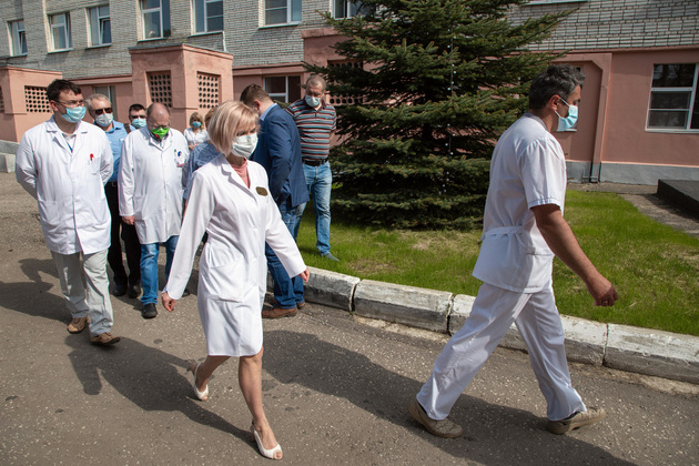 Возле инфекционного госпиталя Областной клинической больницы сводную бригаду медиков из Москвы встречали первый вице-губернатор Владимирской области Сергей Шевченко, и.о. директора департамента здравоохранения Юлия Арсенина и многочисленные владимирские коллеги.