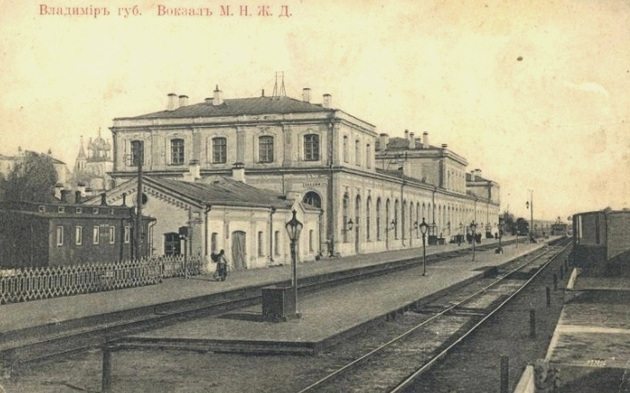 29 мая 1860 года во Владимире состоялось торжественное освящение места и закладки здания Владимирской станции Московско-Нижегородской дороги. Вокзал был отрыт через год и произвел большое впечатление на современников. Один из них писал: «Вокзал этот устроенный к открытию железной дороги, лучший из всех существующих по этой линии, как по обширности, так и по удобству и, можно сказать, по изяществу всех помещений; в особенности хороша зала 1-го класса, замечательная по убранству и грандиозным размерам…». Другой отмечал: «Красивое, длинное здание, одноэтажное с 3 надстройками посредине и по бокам; 5 пассажирских зал…, вверху квартиры служащих».