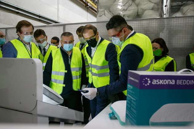 Министр Денис Мантуров, губернатор Владимир Сипягин, председатель комитета по промышленной политике, науке и импортозамещению администрации области Александр Ярошевский и другие гости в сопровождении президента группы компаний «Аскона» Владимира Седова прошли по цехам предприятия, увидели основные этапы производства матрасов, лабораторию и т. д. Руководство предприятия проинформировало министра и губернатора о текущей ситуации.