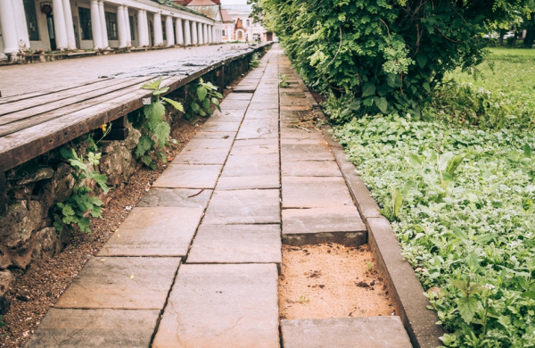 Эксперты ОНФ указали на необходимость выровнять или переложить плитку в тех местах, где она просела, сделать обсыпку песком, а там где накренился бордюрный камень дополнительно произвести работы по его выравниванию.