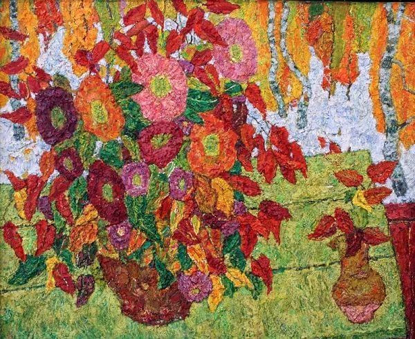 Творческим ответом на ужасы военного времени и стал жизнерадостный и яркий стиль живописи, родоначальниками которого стали мстерские художники-фронтовики Владимир Юкин и Ким Бритов.