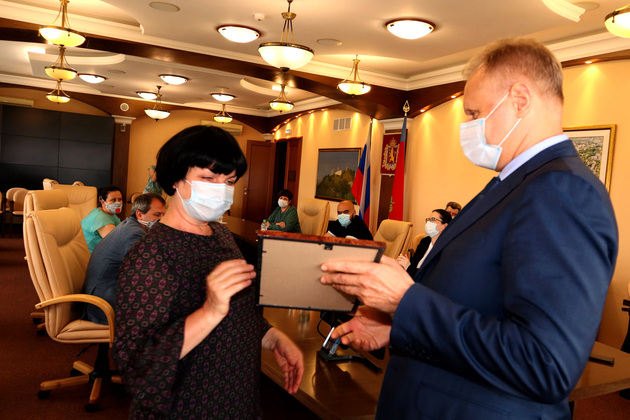 Шевченко сказал, что всем москвичам приготовили благодарственные письма от лица владимирского губернатора. Первое благодарственное письмо за оказанную помощь системе здравоохранения Владимирской области он передал врачу Игорю Лебедеву из больницы им. Пирогова.