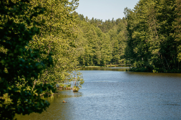 А вокруг - красивейший сосновый лес. Светлый, с высокими стройными деревьями, с цветущей ежевикой. Как можно гадить в таком райском месте? Но ведь гадят! Идем к озеру в Грезино — хотим поспрашивать людей, откуда в их местах столько помоек.