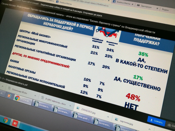 А вот чего бизнес хочет от государства, чтобы выжить и приносить пользу в виде сохраненных рабочих мест, вклада в ВВП и налогов в бюджет. 37% опрошенных бизнесменов по стране ждут грантов и субсидий. В регионе таких жаждущих 42%. Длинных денег по низким ставкам — 32% и 35% соответственно. О возможности быстрого приобретения по адекватным ценам всего того, что требует Роспотребнадзор, мечтают 28% предпринимателей в стране и 19% опрошенных владимирцев. О гарантированном сбыте своих товаров — 24% и 18% соответственно. По ожиданиям снижения налогового бремени владимирцы с коллегами из других регионов почти единодушны: 36% и 40%. Кстати, 15% опрошенных надеются на снижение административного давления, порядка 27-29% - на продление господдержки до конца года, а 20-22% - на снижение тарифов естественных монополий.
